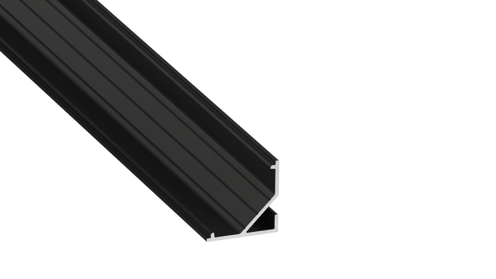 Perfíl Aluminio KIMERA-“ARRE” Anodizado Negro con Difusor Opal , Tapones y Clips Sujección 2,02M