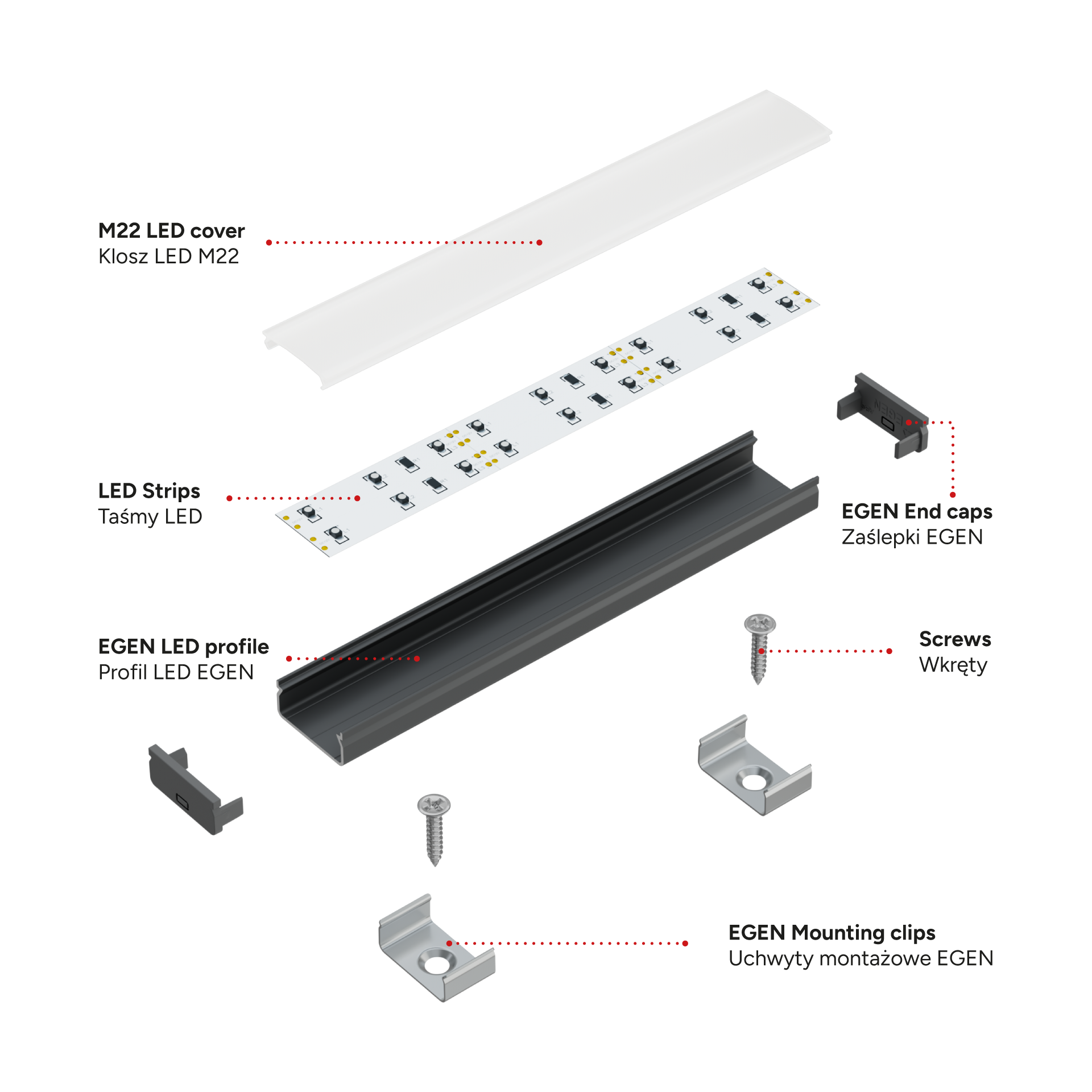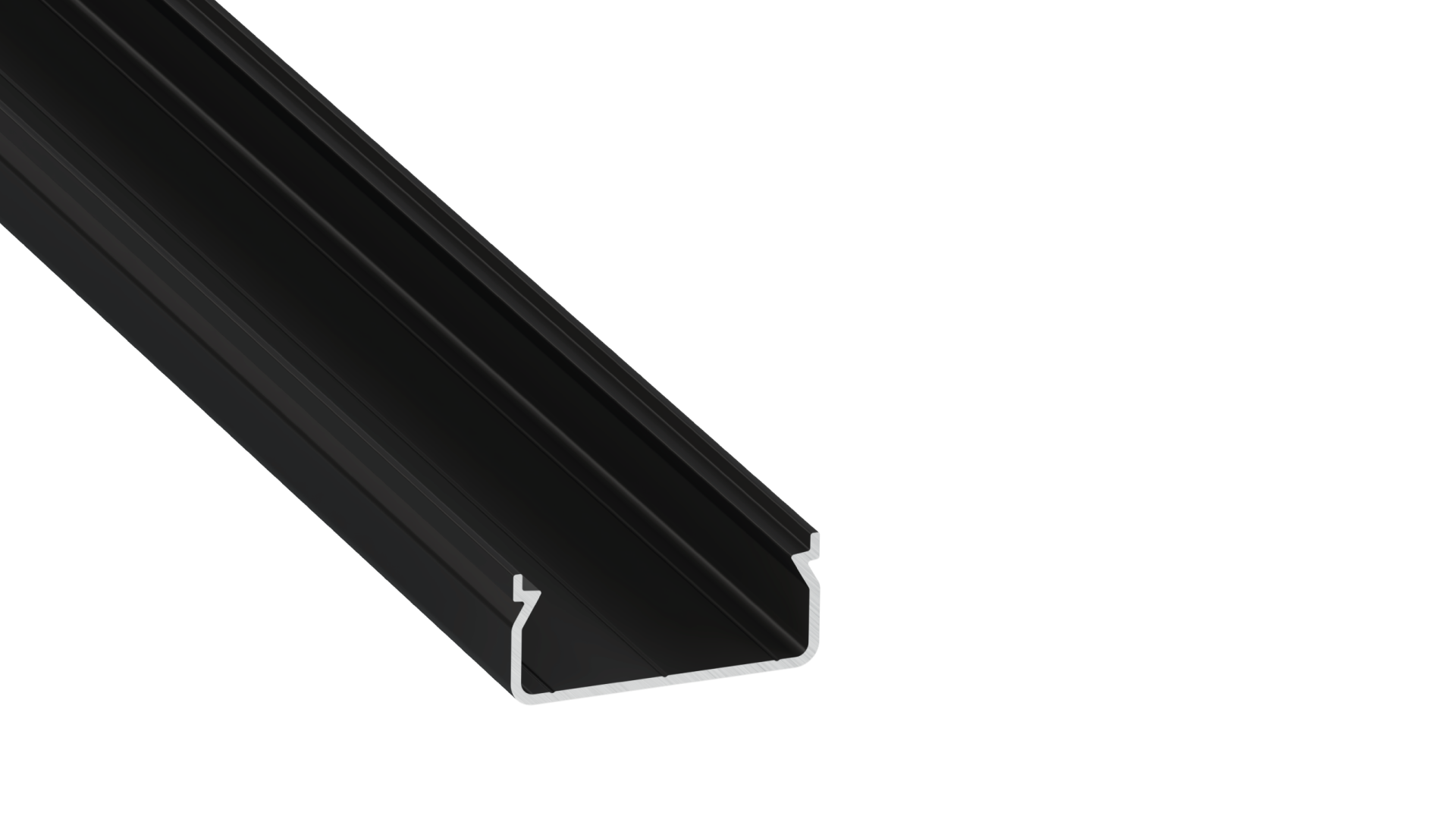 Perfíl Aluminio KIMERA-“EGEN” Anodizado Negro con Difusor Opal , Tapones y Clips Sujección 2,02M