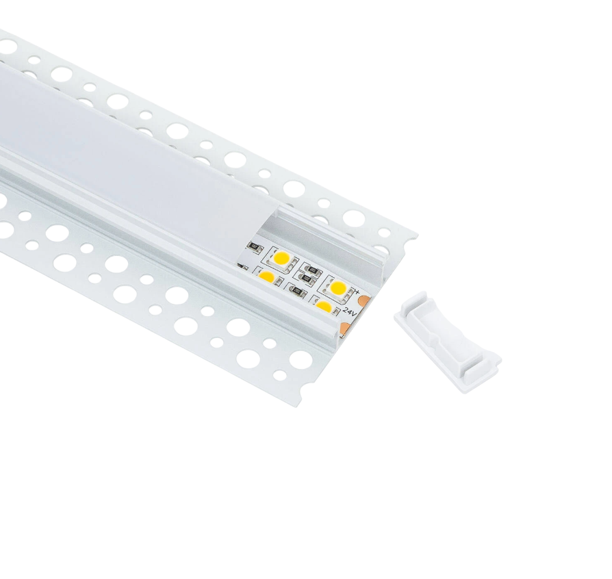 El Perfil de Aluminio para Integración en Escayola/Pladur es una solución profesional para la instalación de tiras LED de hasta 27 mm, ofreciendo una iluminación completamente integrada en techos o paredes. Su diseño permite que quede al ras de la superficie, logrando un acabado limpio y minimalista, ideal para proyectos de iluminación arquitectónica. Instalación en escayola y pladurEste perfil está diseñado para ser instalado directamente en techos y paredes de pladur o escayola. Gracias a sus alas perforadas, puede atornillarse al panel de pladur y posteriormente enlucirse con masilla para lograr una integración perfecta.