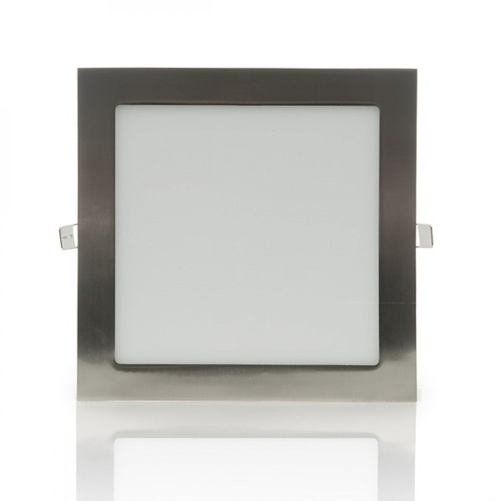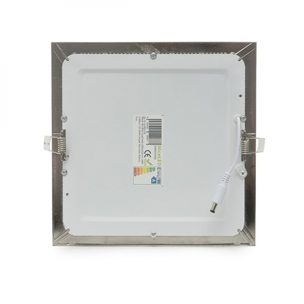 La placa de LEDs cuadrada de 225x225mm, con dimensiones ultrafinas (21 mm), ofrece soluciones para oficinas, fábricas, supermercados, tiendas y para uso residencial. Puede ser instalada directamente a las tomas de corriente suministradas por la red eléctrica (85-265 VAC) con una frecuencia de servicio de 50/60 Hz Cuenta con una alta eficacia (73 LmW) consumiendo 18 W mediante LEDs del tipo SMD2835 y logrando proporcionar un flujo luminoso de 1300 Lm distribuidos uniformemente por un difusor de plástico opalizado de donde se obtiene un índice de reproducción cromática de 80. Aporta una iluminación equivalente a una bombilla incandescente de 100 W, su consumo representa un valor de 18kWh1000h, reduciendo la cantidad de energía facturada y las emisiones de gases contaminantes a la atmósfera. Esta placa está alimentada con un driver no dimable incluido en el paquete que debe ser conectado directamente a la red, con un conector de salida compatible con la conexión de la placa (45-60 VDC, 300 mA), adicionalmente se incluyen los accesorios necesarios para la instalación de la placa.