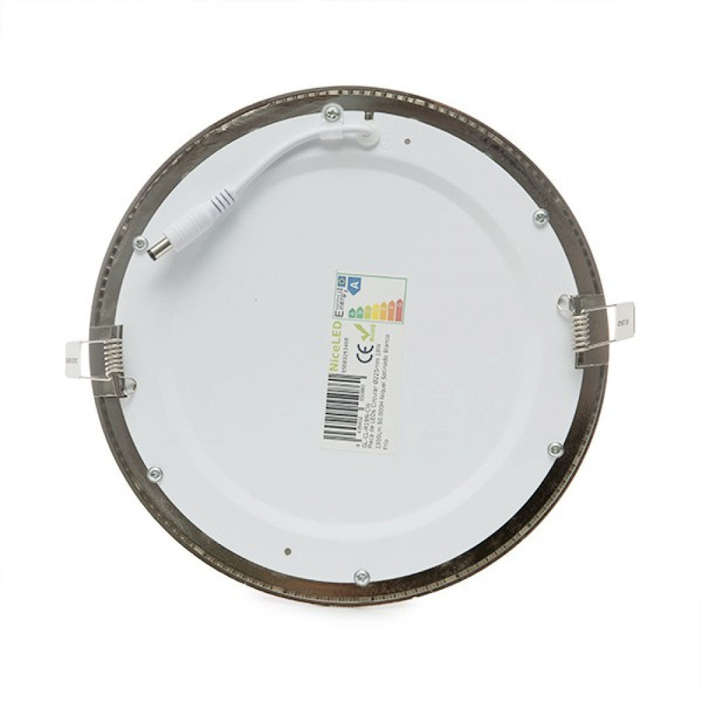 La placa de LEDs circular de 225 mm de diámetro con dimensiones ultrafinas (19 mm), ofrece soluciones para oficinas, fábricas, supermercados, tiendas y para uso residencial. Puede ser instalada directamente a las tomas de corriente suministradas por la red eléctrica (85-265 VAC) con una frecuencia de servicio de 50/60 Hz Cuenta con una alta eficacia (73 LmW) consumiendo 18 W mediante LEDs del tipo SMD2835 y logrando proporcionar un flujo luminoso de 1300 Lm distribuidos uniformemente por un difusor de plástico opalizado de donde se obtiene un índice de reproducción cromática de 80. Aporta una iluminación equivalente a una bombilla incandescente de 100 W, su consumo representa un valor de 18kWh1000h, reduciendo la cantidad de energía facturada y las emisiones de gases contaminantes a la atmósfera. Esta placa está alimentada con un driver no dimable incluido en el paquete que debe ser conectado directamente a la red, con un conector de salida compatible con la conexión de la placa (45-60 VDC, 300 mA), adicionalmente se incluyen los accesorios necesarios para la instalación de la placa.