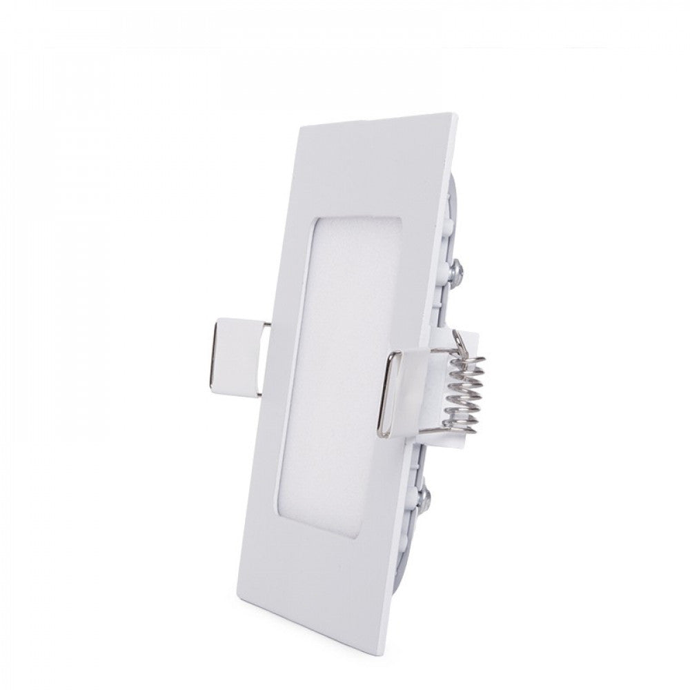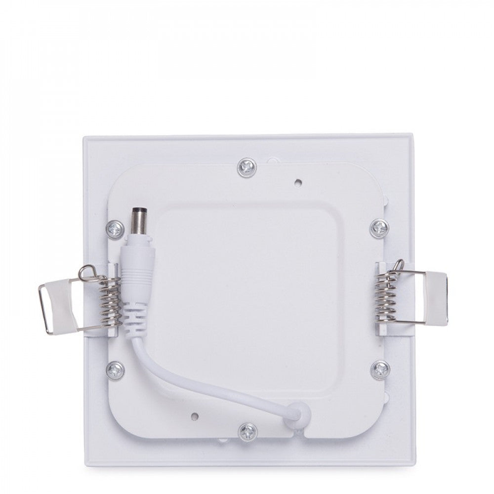 La placa de LEDs cuadrada de 120x120mm, con dimensiones ultrafinas (19 mm), ofrece soluciones para oficinas, fábricas, supermercados, tiendas y para uso residencial. Puede ser instalada directamente a las tomas de corriente suministradas por la red eléctrica (85-265 VAC) con una frecuencia de servicio de 50/60 Hz Cuenta con una alta eficacia (67 LmW) consumiendo 6 W mediante LEDs del tipo SMD2835 y logrando proporcionar un flujo luminoso de 400 Lm distribuidos uniformemente por un difusor de plástico opalizado de donde se obtiene un índice de reproducción cromática de 80. Aporta una iluminación equivalente a una bombilla incandescente de 40 W, su consumo representa un valor de 6kWh1000h, reduciendo la cantidad de energía facturada y las emisiones de gases contaminantes a la atmósfera. Esta placa está alimentada con un driver no dimable incluido en el paquete que debe ser conectado directamente a la red, con un conector de salida compatible con la conexión de la placa (12-28 VDC, 300 mA), adicionalmente se incluyen los accesorios necesarios para la instalación de la placa.