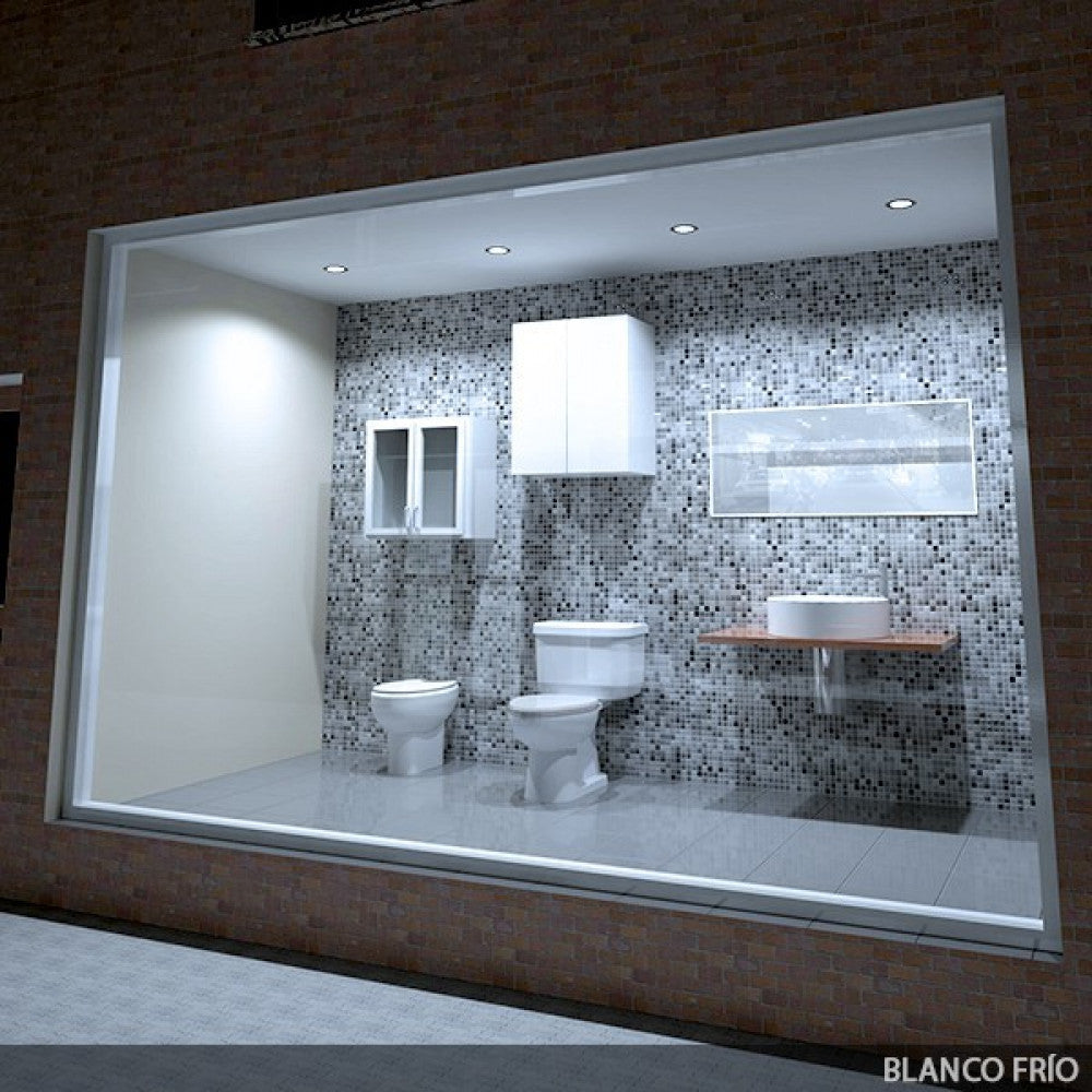 Acabado en color blanco construido con aluminio. La placa tiene un grado de protección IP25 (válido para polvo y humedad en interiores), además de ser suficientemente robusto para las exigencias mecánicas requeridas. Esta placa está disponible en blanco frío (6000°K) y blanco cálido (3000°K). La temperatura de color indicada puede sufrir oscilaciones correspondientes a una tolerancia del 7%.