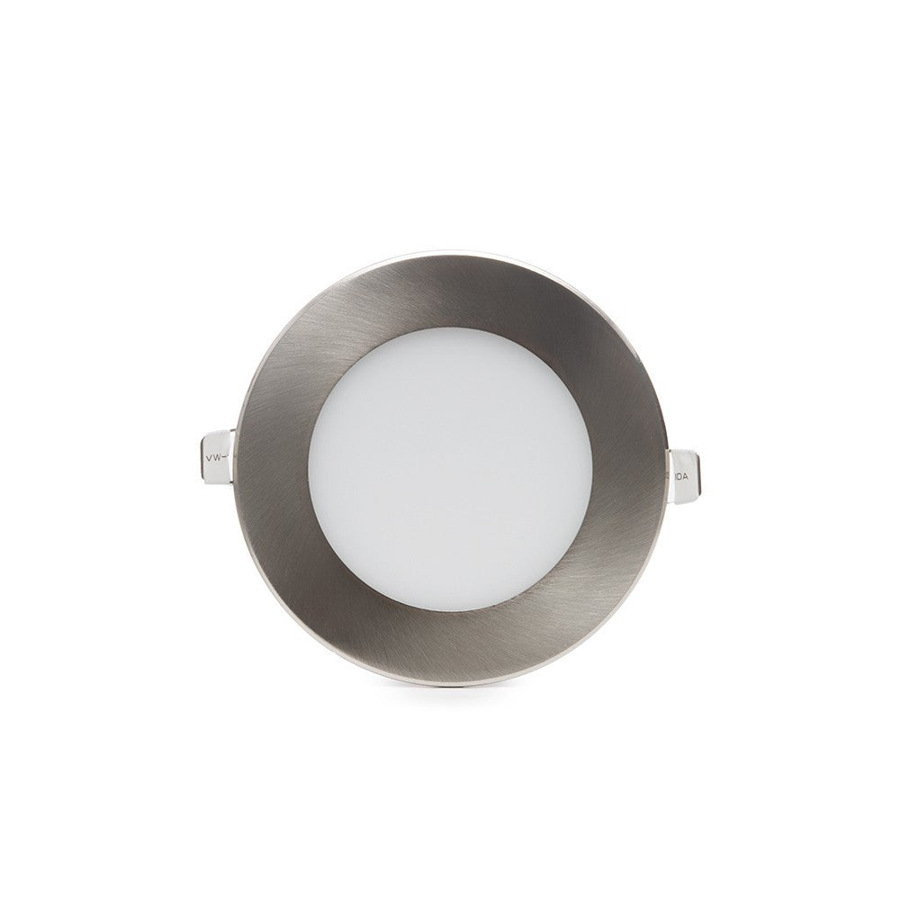 Acabado en color níquel satinado con aluminio. La placa tiene un grado de protección IP25 (válido para polvo y humedad en interiores), además de ser suficientemente robusto para las exigencias mecánicas requeridas. Esta placa está disponible en blanco frío (6000°K) . La temperatura de color indicada puede sufrir oscilaciones correspondientes a una tolerancia del 7%.