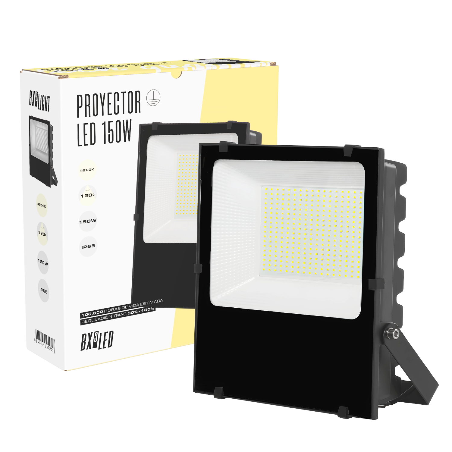 El Proyector LED 150 W BX3 LIGHT Regulable TRIAC es una luminaria exterior de alto rendimiento diseñada para ofrecer gran potencia lumínica con control de intensidad mediante sistemas de regulación por corte de fase. Especificaciones técnicas: Potencia nominal: 150 W Sistema de regulación: TRIAC (leading edge / trailing edge) Grado de protección: IP65 (resistente al polvo y chorros de agua) Tecnología LED: Alta eficiencia Vida útil estimada: Hasta 50.000 horas Encendido instantáneo sin parpadeos Cuerpo: Aluminio con disipación térmica optimizada Características principales: Regulación progresiva y estable de la intensidad lumínica Compatible con reguladores de pared tipo TRIAC Alta resistencia a condiciones climáticas adversas Bajo consumo energético frente a proyectores tradicionales Soporte orientable para ajuste preciso del haz de luz Ideal para fachadas, zonas industriales, parkings y espacios comerciales Fabricado bajo los estándares de calidad de BX3 LIGHT, garantiza rendimiento estable, eficiencia energética y fiabilidad en aplicaciones de iluminación exterior regulable.