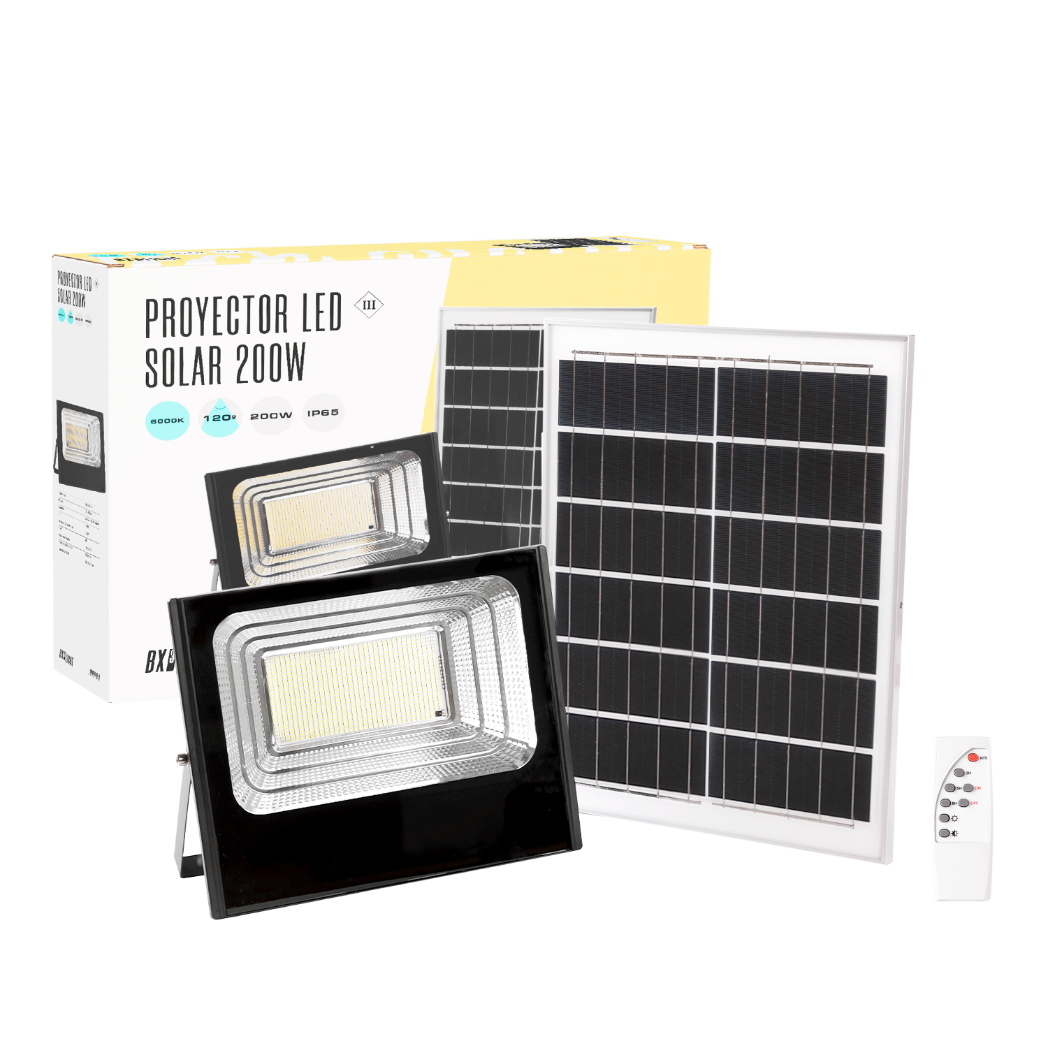 El Proyector LED Solar con Control Remoto BX3 LIGHT es una solución de iluminación exterior autónoma diseñada para ofrecer alto rendimiento lumínico sin necesidad de conexión a red eléctrica. Equipado con panel solar y batería integrada, permite funcionamiento automático y control total mediante mando a distancia. Especificaciones técnicas: Tecnología LED: Alta eficiencia Alimentación: Panel solar integrado Control: Mando a distancia incluido Encendido automático: Sensor crepuscular Grado de protección: IP65 (resistente al polvo y chorros de agua) Batería recargable integrada Larga vida útil operativa Características principales: Funcionamiento 100% autónomo Control remoto de encendido, apagado y modos de iluminación Programación de temporizador (según modelo) Fácil instalación sin cableado Alta resistencia a condiciones climáticas adversas Ideal para jardines, fachadas, parkings, fincas y zonas sin acceso eléctrico Fabricado bajo los estándares de calidad de BX3 LIGHT, garantiza eficiencia energética, fiabilidad y comodidad de uso en proyectos de iluminación exterior solar.