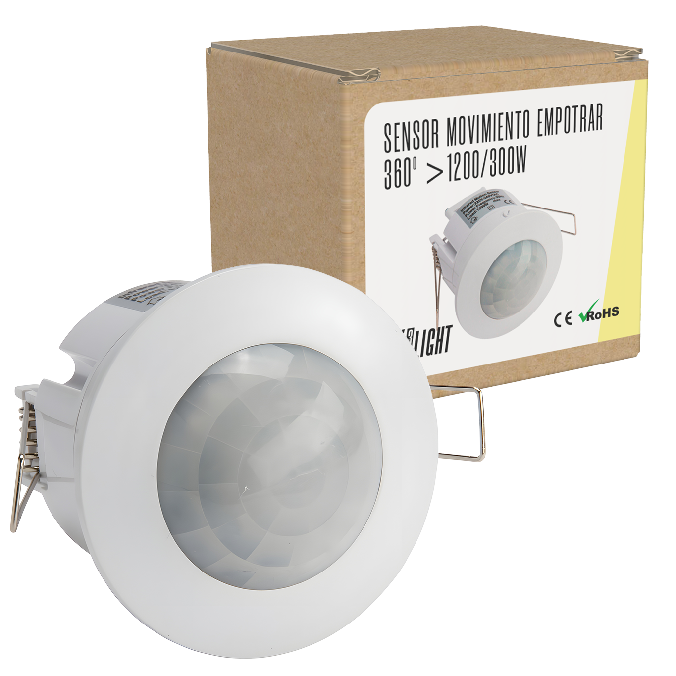 El Sensor de Movimiento Empotrar 360º BX3 LIGHT es un dispositivo diseñado para el control automático de iluminación mediante detección de presencia, ofreciendo cobertura total y optimización del consumo energético en instalaciones interiores. Su formato empotrable permite una integración discreta en techos, garantizando una estética limpia y profesional. Especificaciones técnicas: Ángulo de detección: 360º Potencia máxima de carga: Hasta 1200 W (carga resistiva) Hasta 300 W (carga LED) Tipo de instalación: Empotrable en techo Tecnología de detección: Infrarrojos (PIR) Tensión de funcionamiento: 220-240 V AC Ajuste de tiempo y sensibilidad (según modelo) Características principales: Cobertura total 360º Encendido automático al detectar movimiento Apagado automático tras tiempo programado Ahorro energético significativo Instalación discreta en techos Ideal para pasillos, oficinas, baños, trasteros y zonas comunes Fabricado bajo los estándares de calidad de BX3 LIGHT, garantiza fiabilidad, seguridad y eficiencia en sistemas de iluminación automatizada.