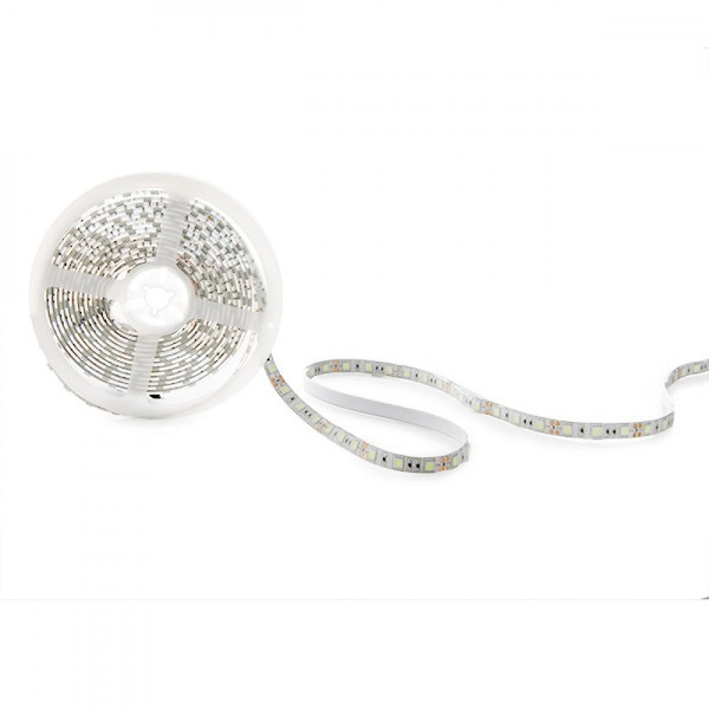 La tira de LEDs de 5000 mm de longitud, con 10 mm de espesor, ofrece soluciones para iluminación en el exterior. La iluminación mediante tiras de LEDs da soluciones originales que se ajustan a los gustos más exigentes tanto para uso comercial como residencial. Puede ser instalada a 12 VDC. Cuenta con una eficacia de 35 LmW consumiendo 60 W mediante 300 LEDs del tipo SMD5050 y logrando proporcionar un flujo luminoso de 2100 Lm distribuidos uniformemente a lo largo de 5 metros de longitud, proporcionando 420 Lm/m con 12 W/m, obteniendo un índice de reproducción cromática de 85.