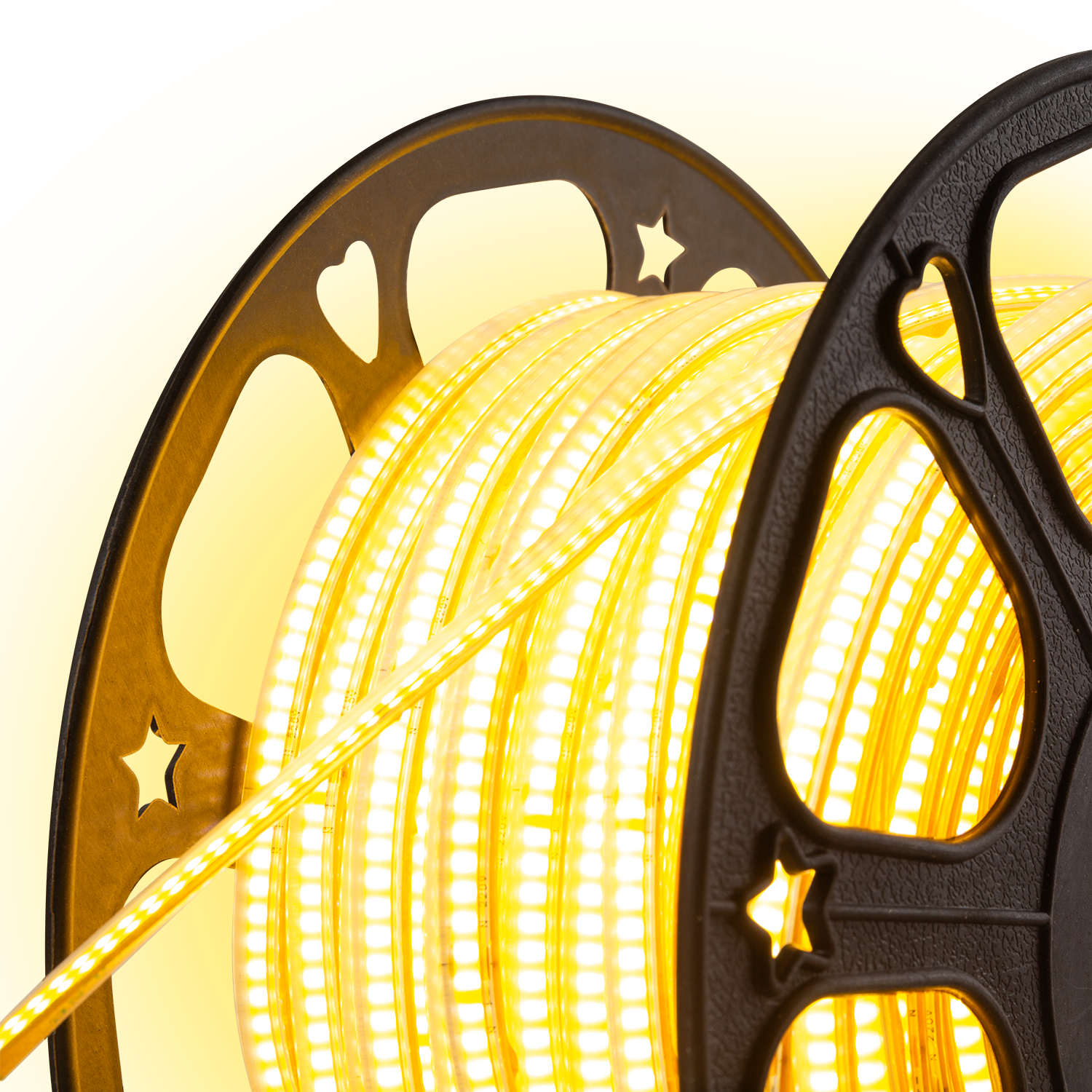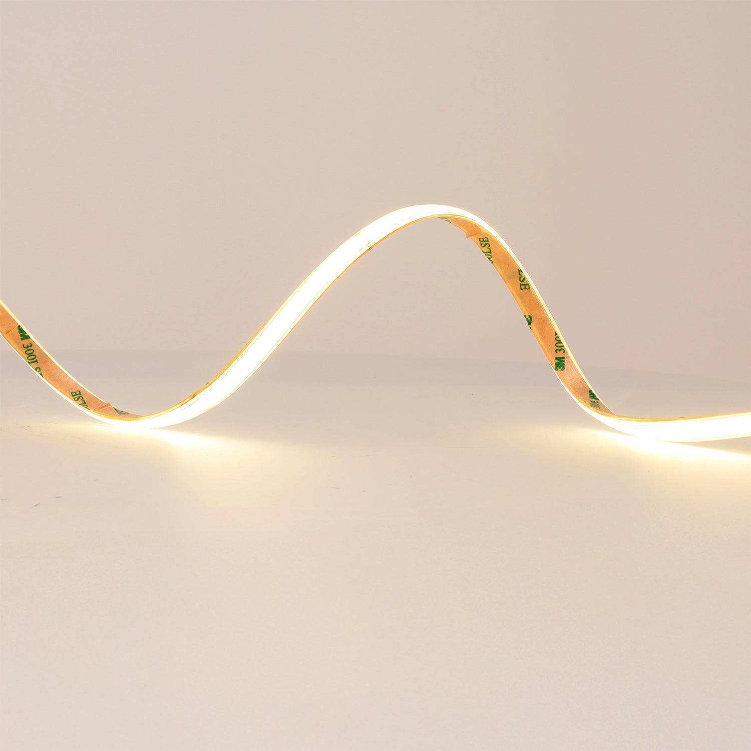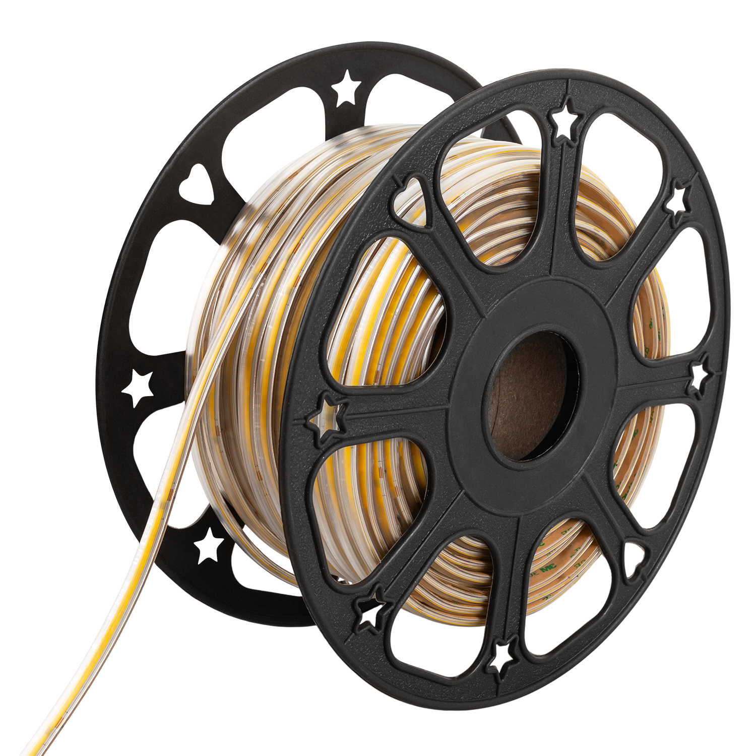 La Bobina Tira LED Regulable Autorectificada 220 V AC COB no requiere ningún tipo de fuente de alimentación pues se conecta directamente a la red eléctrica. Su flexibilidad permite que se adapte a casi cualquier superficie. Esta bobina integra LEDs de tecnología COB de gran eficiencia, haciendo que la luz se reparta uniformemente y consiguiendo un mayor rendimiento en lm/W para la misma potencia que con LEDs SMD tradicionales. Por ello, esta consume tan solo 8 W por metro.