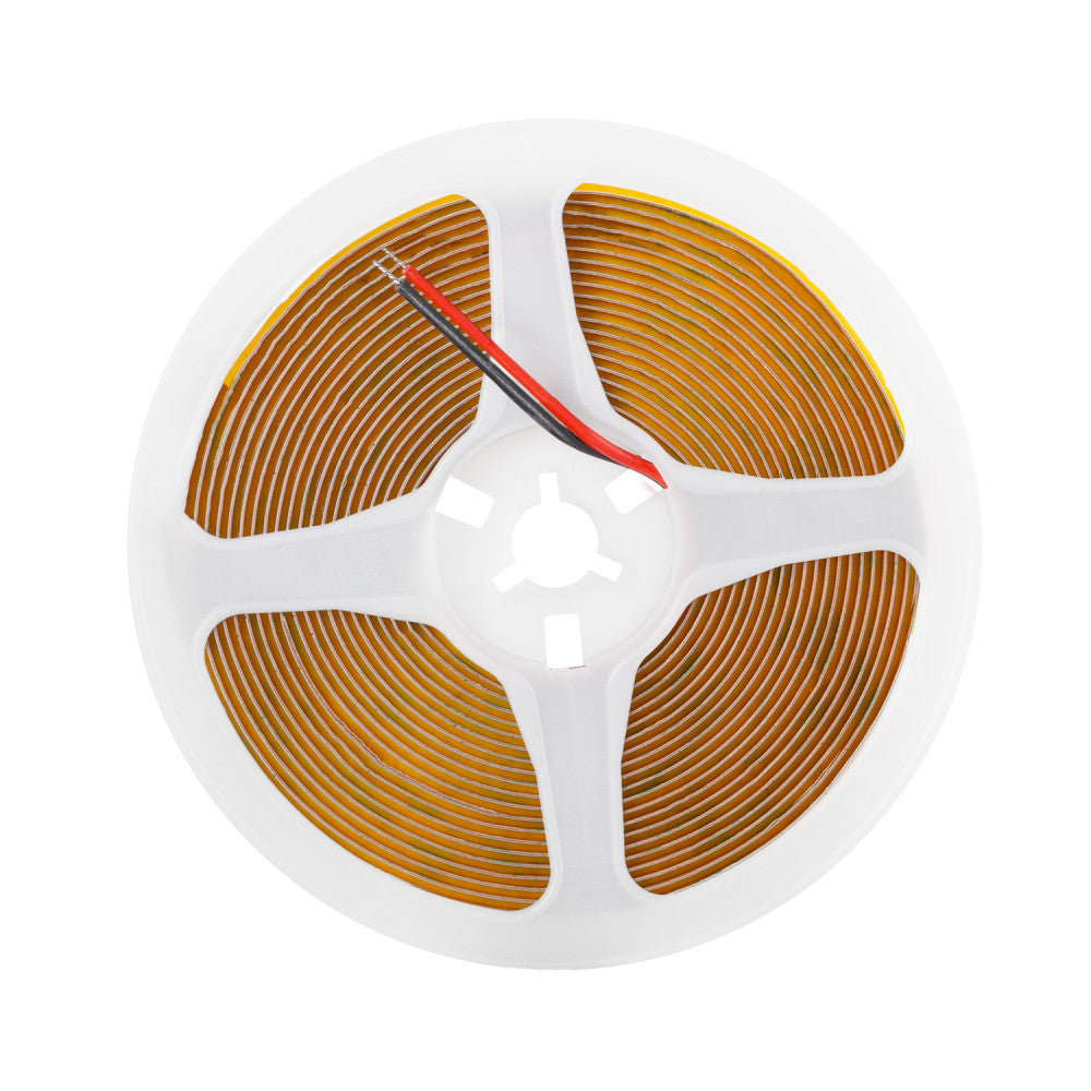 La Tira LED 24 V DC COB 320 LED/m 5 m IP20 CRI90 Ancho 8 mm Corte 5 cm es una opción muy extendida si se desea disponer de una luz decorativa que consuma muy poco. Su diseño flexible se adapta a cualquier ubicación donde aportará un toque de color. Esta tira LED tiene una longitud de 5 metros e integra LEDs de tecnología COB de gran eficiencia, haciendo que la luz se reparta uniformemente y consiguiendo un mayor rendimiento en lm/W para la misma potencia que con LEDs SMD tradicionales. El ancho de esta tira LED es de 8 mm, por lo que puede instalarse en casi cualquier rincón de tu hogar.
