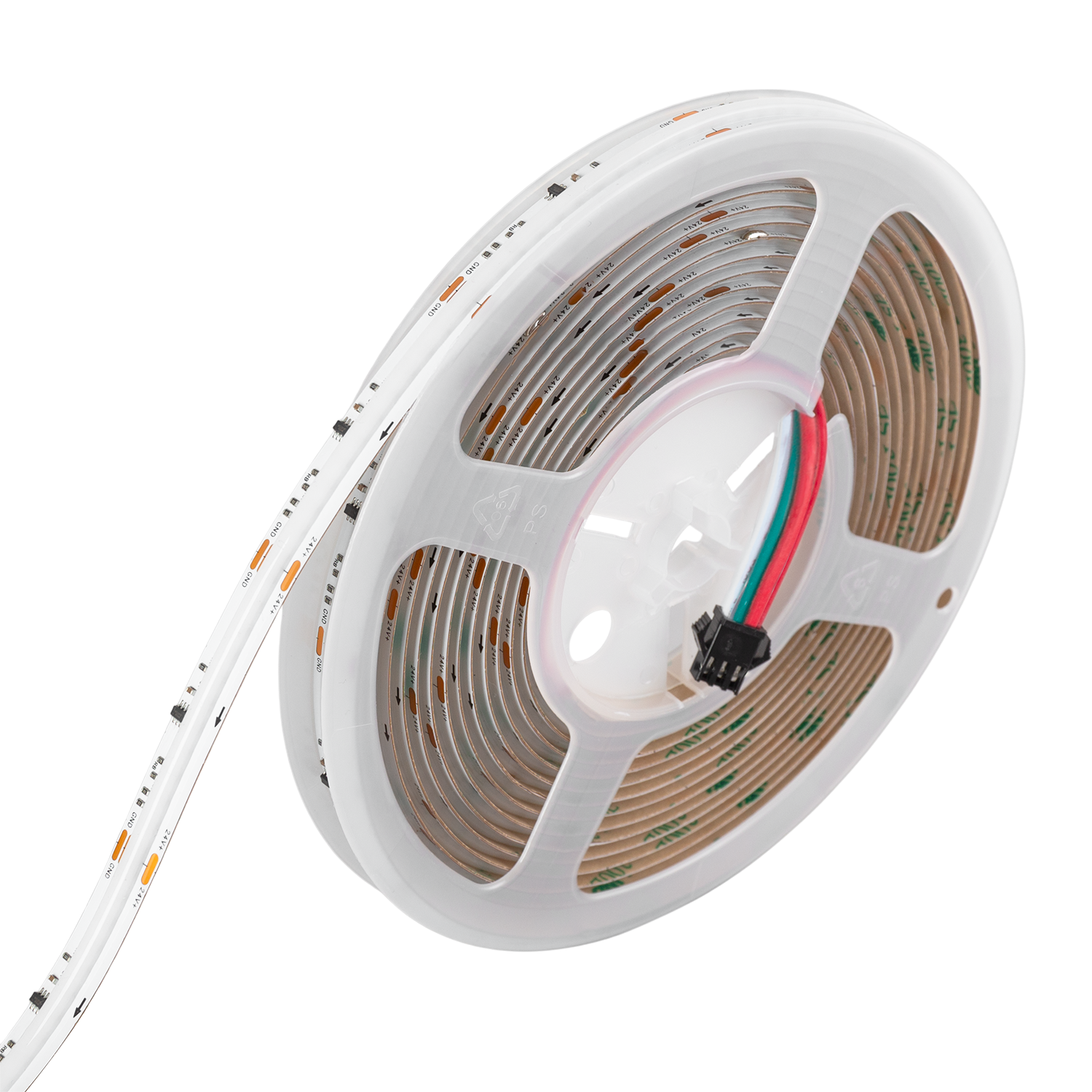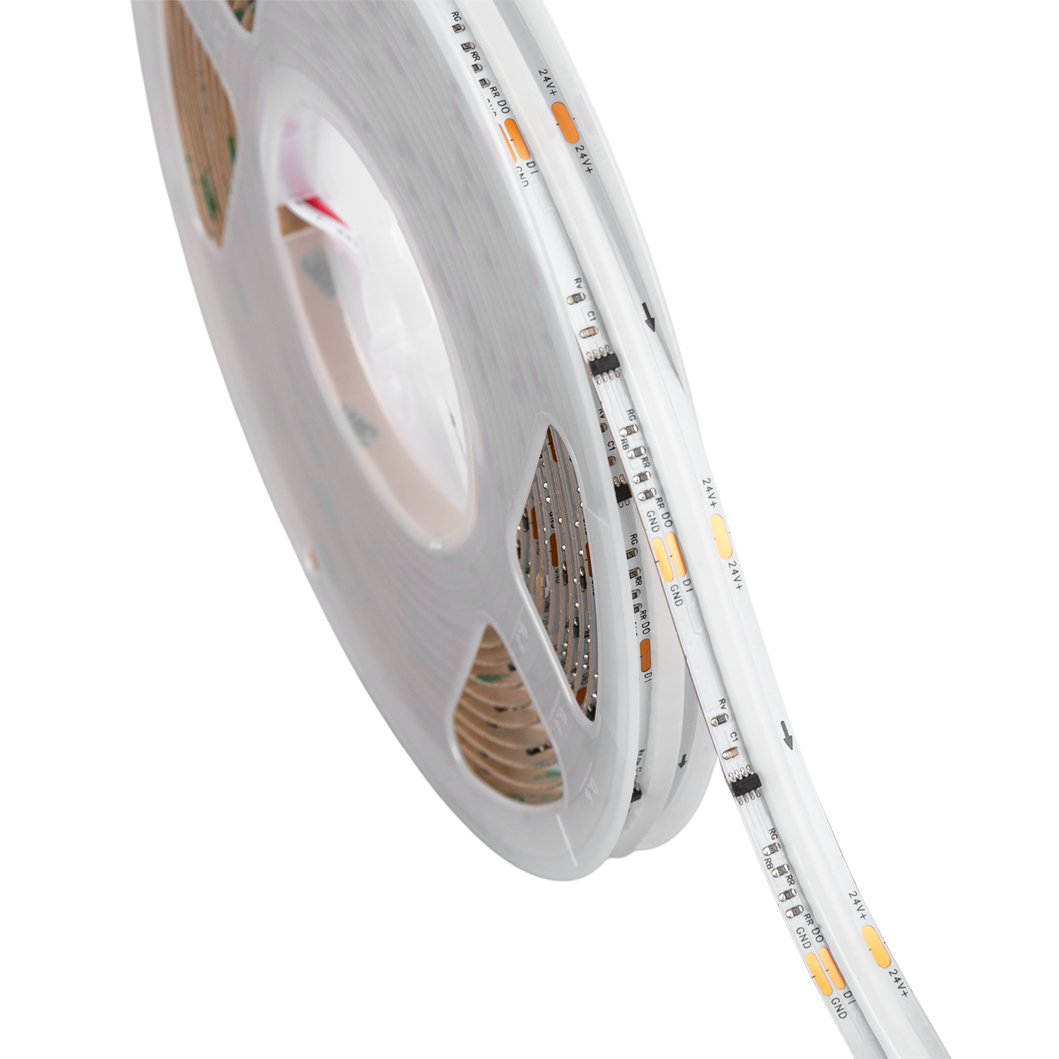 La Tira LED COB Digital 24 V DC COB 1000 LED/m 5 m IP20 CRI90 Ancho 12 mm Corte 5 cm es una solución de iluminación avanzada que combina la tecnología COB con control digital SPI, permitiendo gestionar de forma independiente el color de los LEDs. Con 20 píxeles por metro, esta tira es capaz de realizar sofisticados efectos de seguimiento, flash y control de grupos de LEDs, ofreciendo una experiencia de iluminación dinámica y personalizada mucho más versátil que las tiras COB convencionales. Esta Tira LED RGBIC Digital COB cuenta con 1000 LEDs por metro, garantizando una iluminación continua y uniforme con una reproducción cromática superior gracias a su CRI90. Su chip de control integrado WS2811 permite un manejo preciso de cada grupo de LEDs a través de la interfaz SPI (Serial Peripheral Interface), otorgando flexibilidad y creatividad en tus proyectos de iluminación.